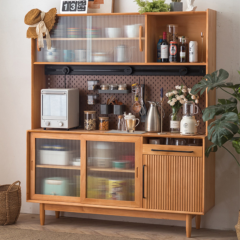 Solid wood sideboard high cabinet integrated against the wall Japanese-style hole board Changhong glass living room floor-to-ceiling thin wine cabinet storage cabinet