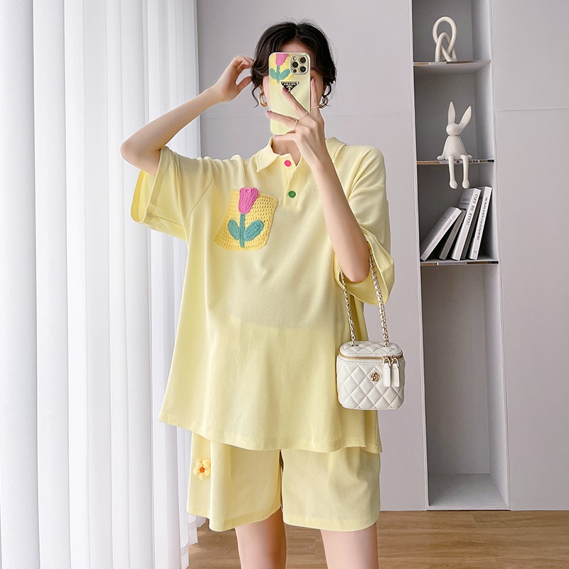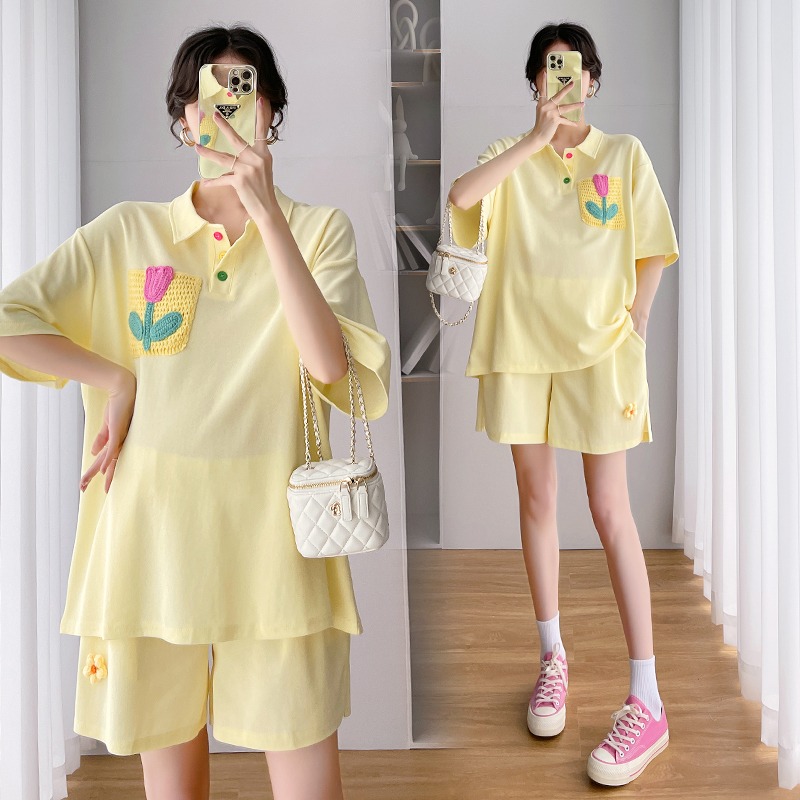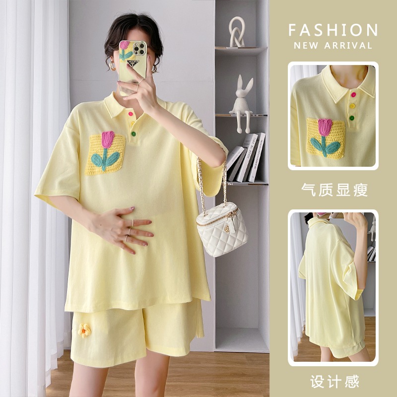 Pregnant Woman Summer Clothing Suit Fashion out of summer slim fit loose large size for short sleeves shorts casual sports Two sets