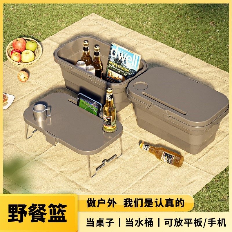 Outdoor field camping equipment supplies large collection basket foldable small tableboard packing seaman lift cracker
