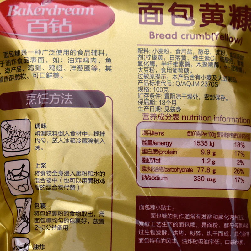 100 Drill Bread Chaff Household Fried Chicken Wrap Powder Fried Cilanto chicken Lyu chicken steak with golden white 100g whole box
