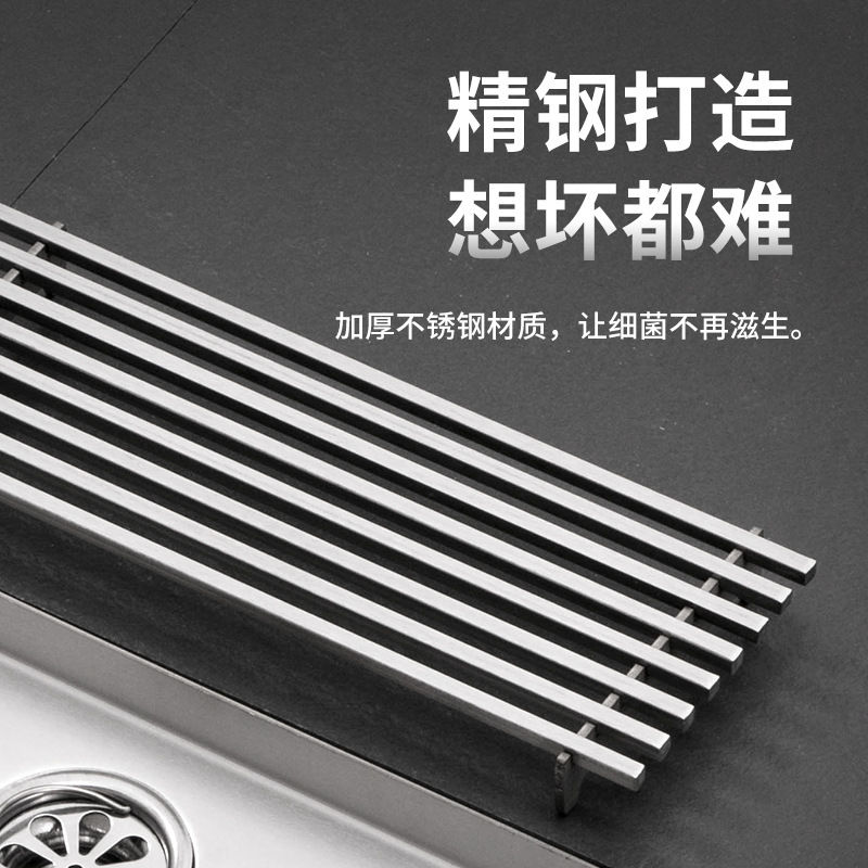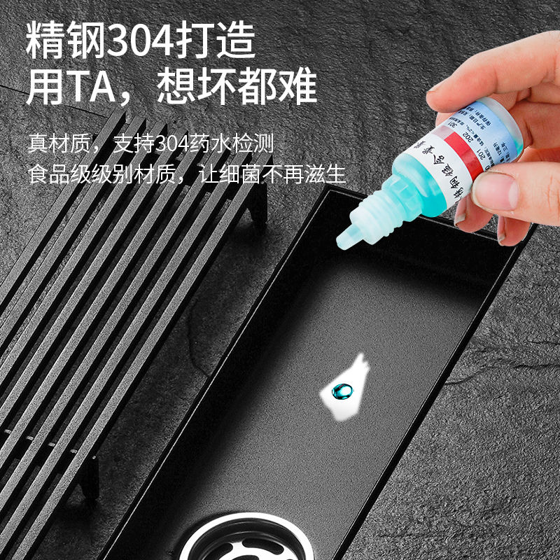 Gun Ash 304 Stainless Steel Strip Toilet Long Floor Drain Deodorant Shower Room Drain Sink Strip Custom Side Row-Taobao