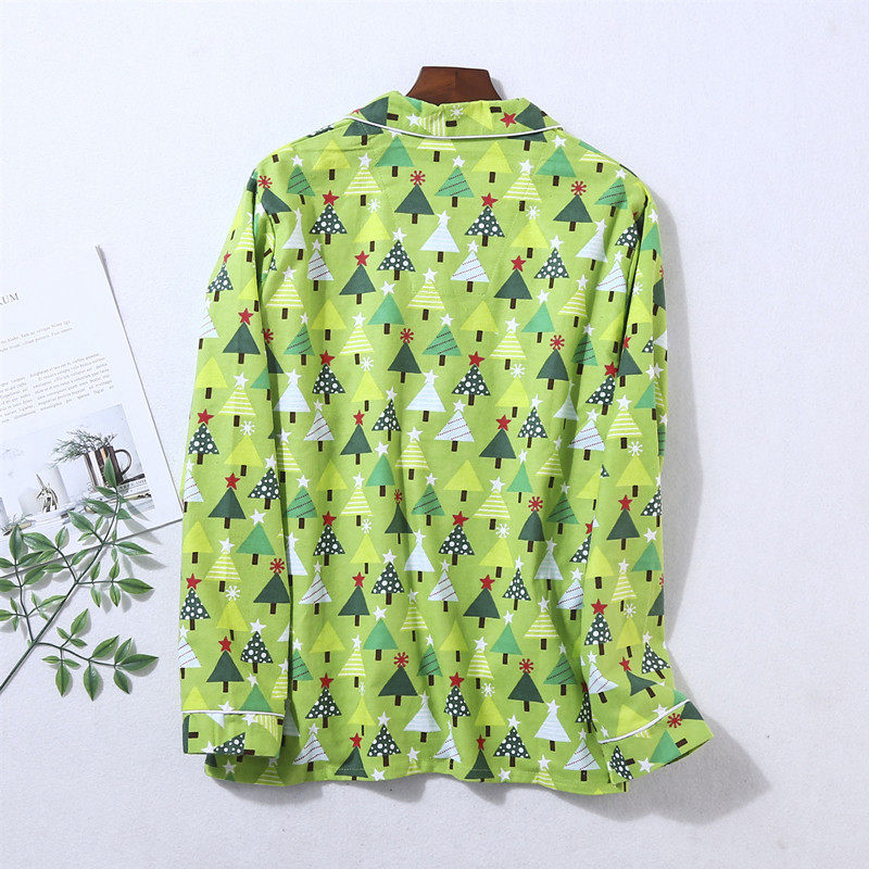 Pajamas Ladies Summer and Autumn Pure Cotton Long Sleeve Pants Cartoon Green Tree Sweet Homewear Set Foreign Trade Clearance