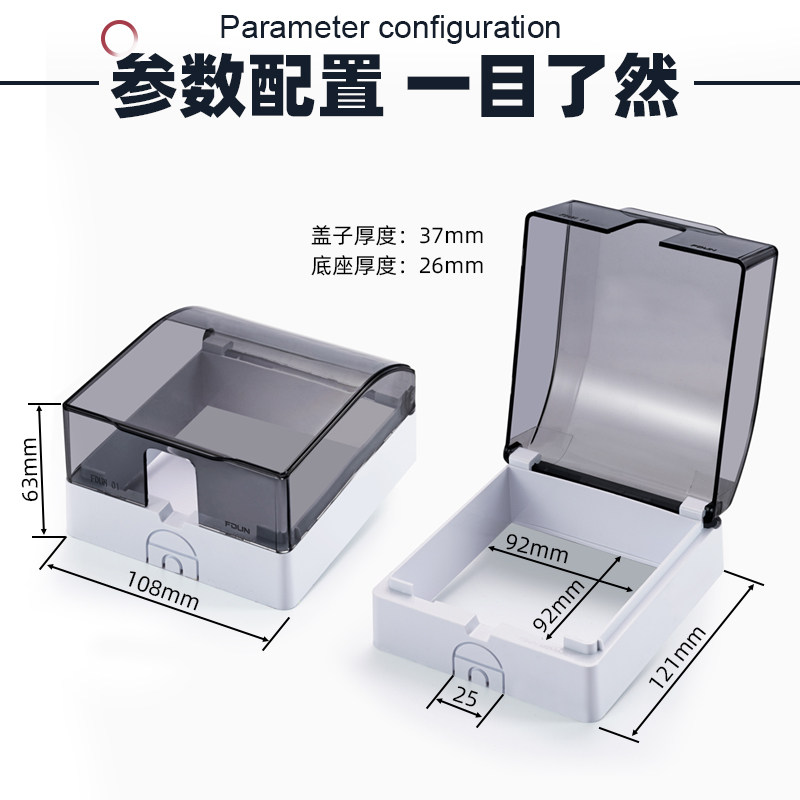 Type 86 ultra-thin surface-mounted paste-type switch socket protective cover waterproof cover toilet switch panel splash-proof box