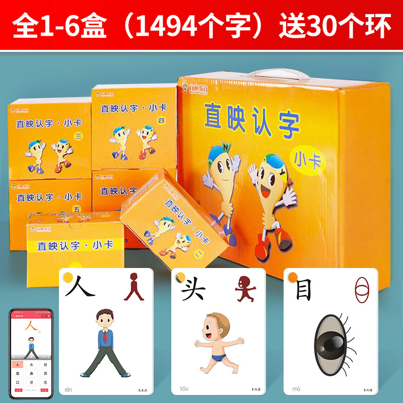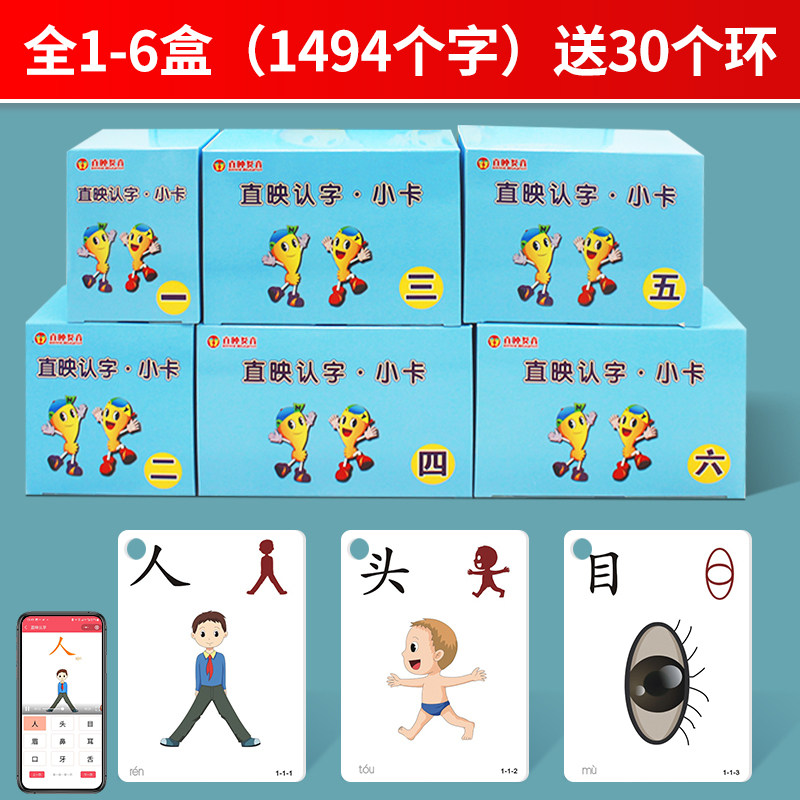 The full set of recognition (six literacy six reads) 1-6 yellow microcards (1494) 1-6 blue microcards (1494 thickened) read first volume (literacy reading)