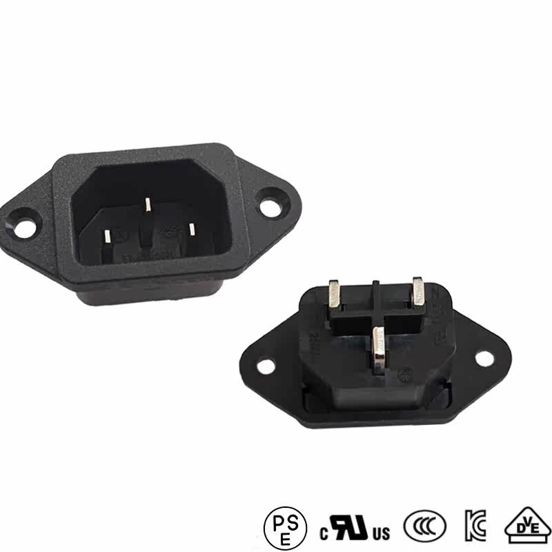 Lock screw pin AC power socket ST-A01-002 series C14 Pinzi socket IEC power socket black