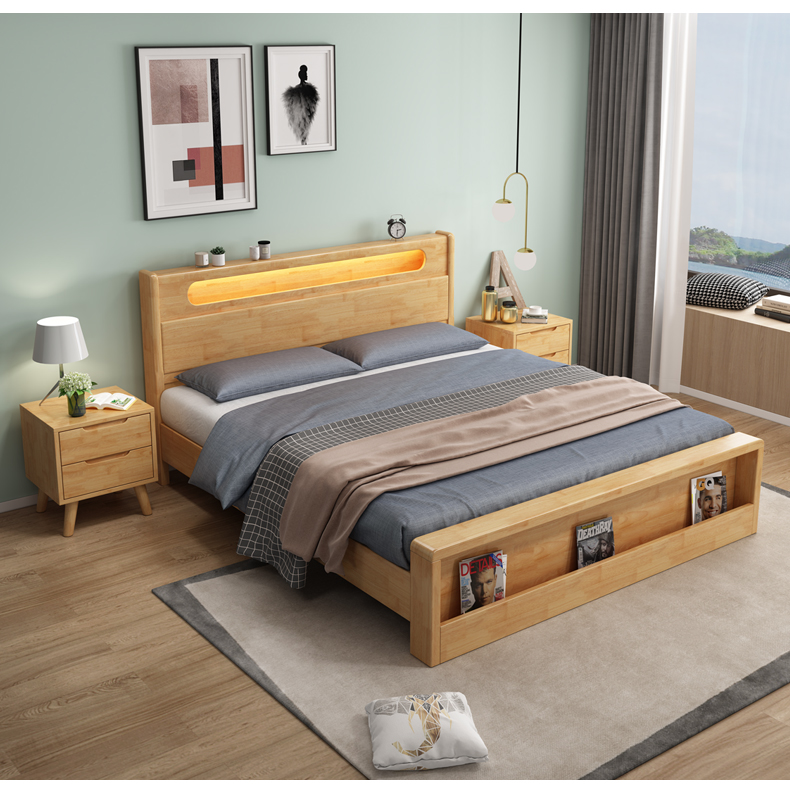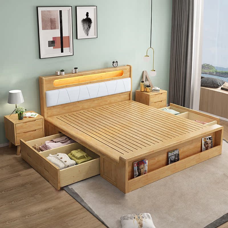 Modern minimalist solid wood bed Nordic home bedroom 1 8m double bed economy high box storage soft bed
