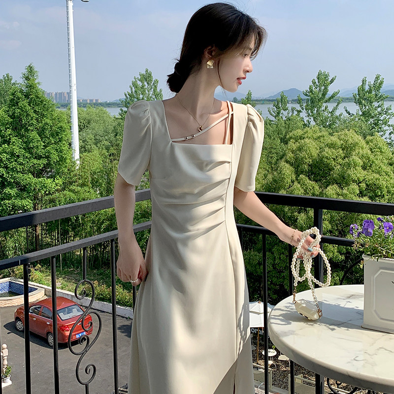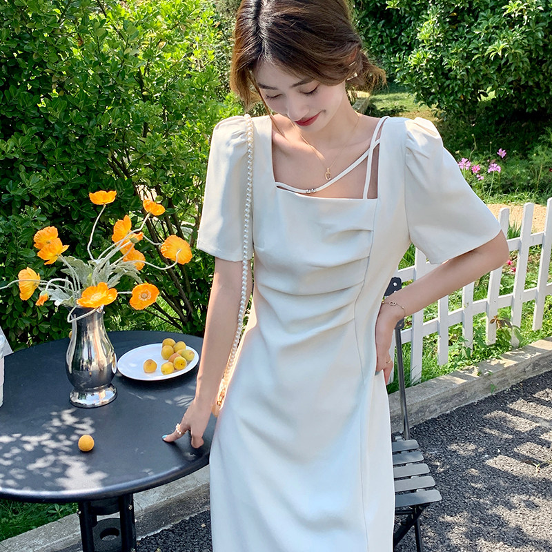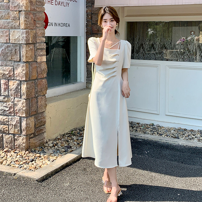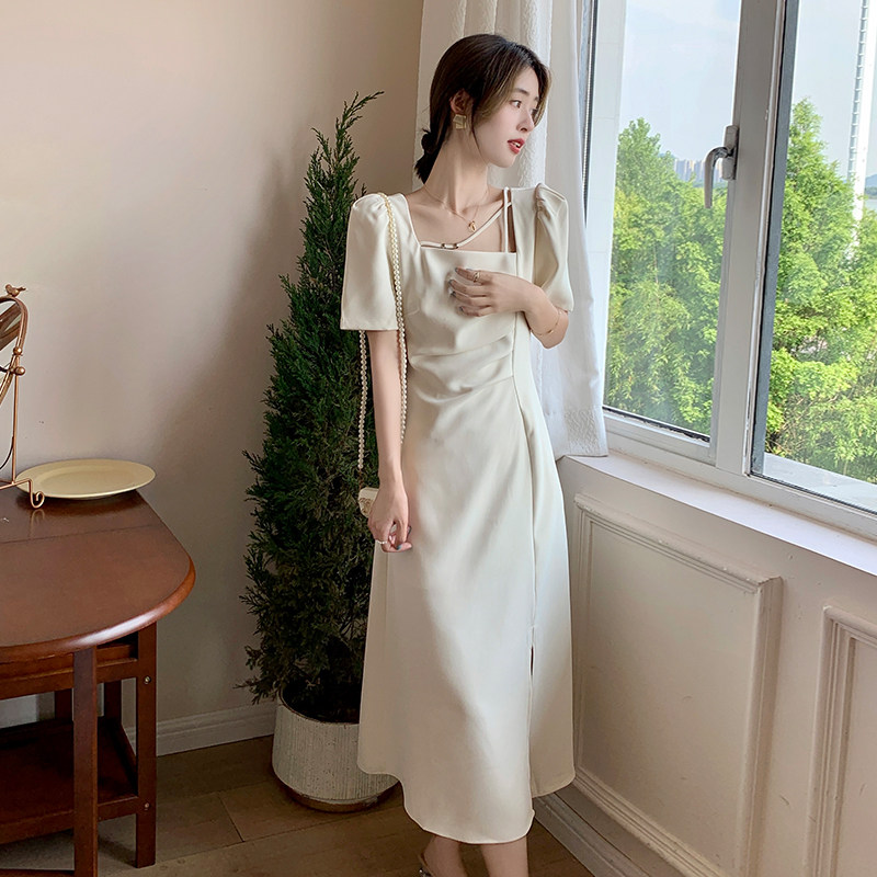 Concubine children summer slim temperament square collar puff sleeves careful machine retracted waist split Korean version of the a-word thin dress