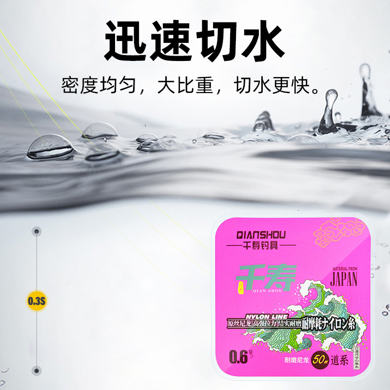 Qianshou fish line main line strong tension nylon line does not roll Japan imported raw silk super soft sub-line transparent