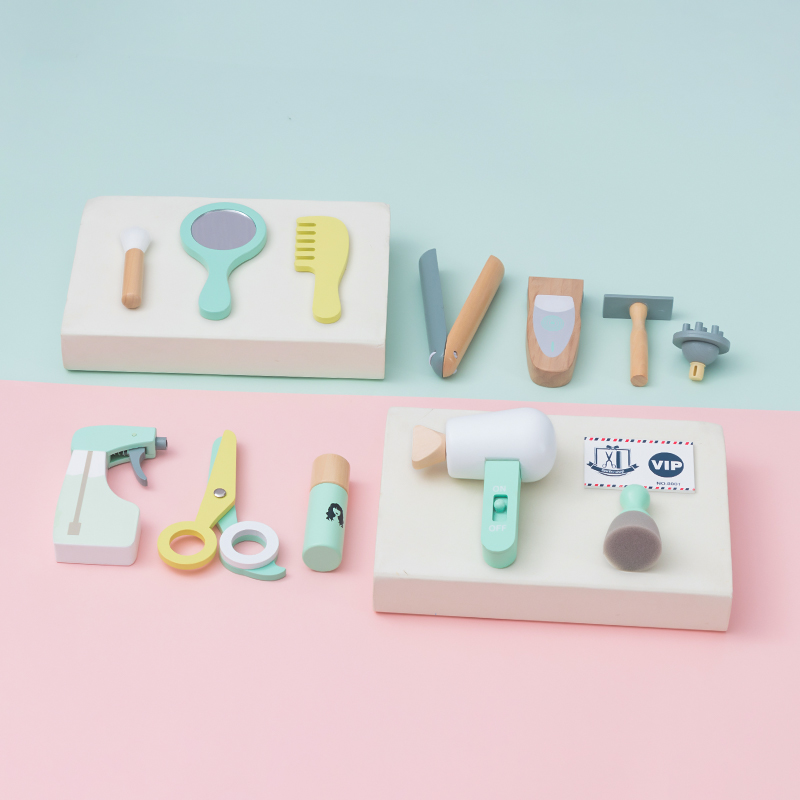 Children's wooden play house wine toy simulation haircut haircut beauty combination game male and female treasure 2-6 years old gift