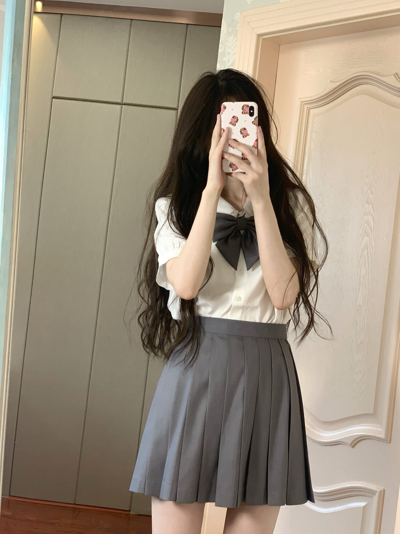 Thai school uniforms Nano the same white lace short sleeve shirt pink Lan medium short sleeve shirt white Lan medium short sleeve shirt white attached short sleeve shirt white attached short sleeve shirt grey pleated skirt white lace short sleeve