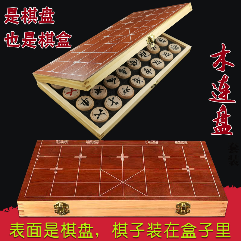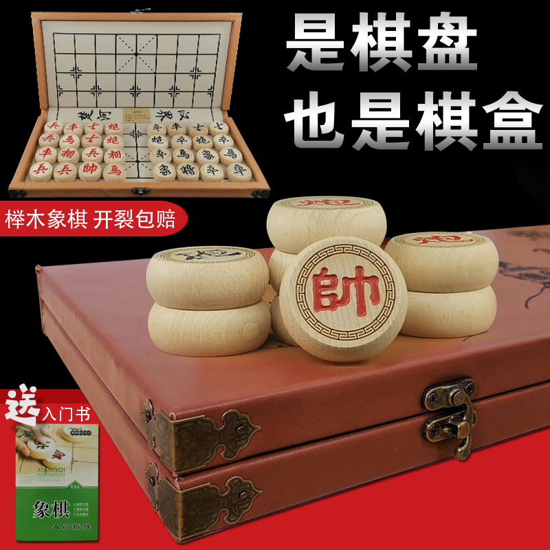 Chinese Chess Large Thick Solid Wood Beech High-grade Folding Box with Wooden Chessboard Adult Children's Student Set