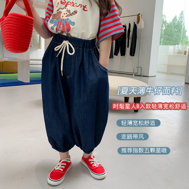 Korean children's clothing, children's light jeans, summer long pants, girls' Korean fan, anti-mosquito pants, baby casual pants