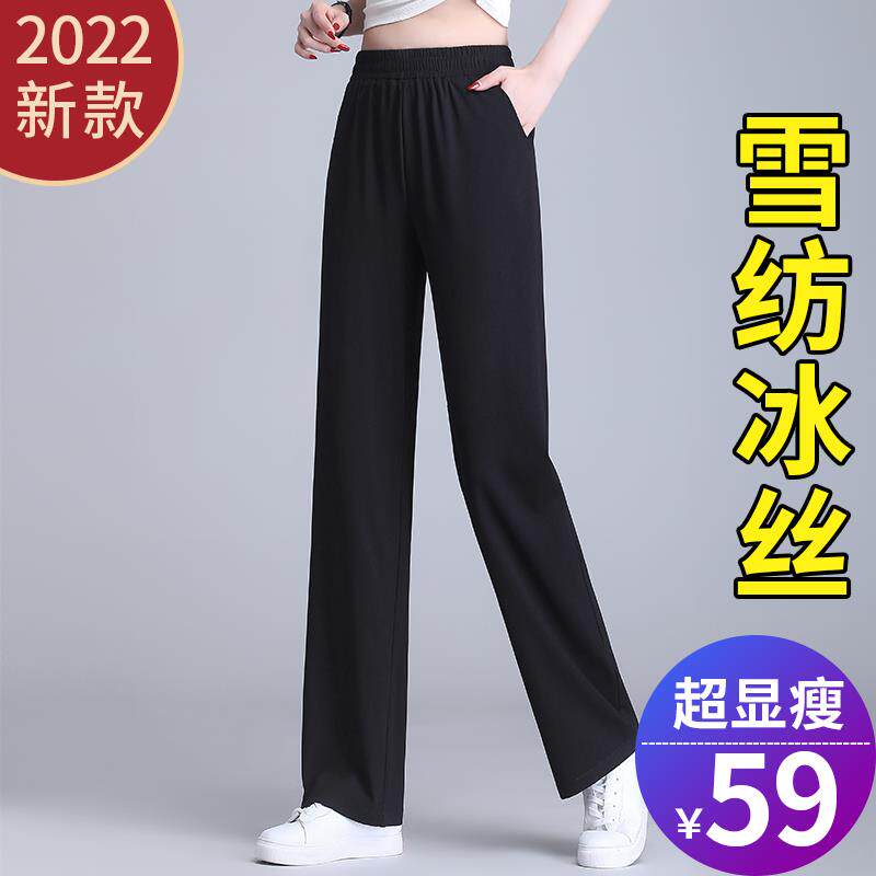 Snow Spinkle Broad Pants Summer Thin 2022 New High Waist Vertical Digital Ice Screen Landscarf Leisure Pants