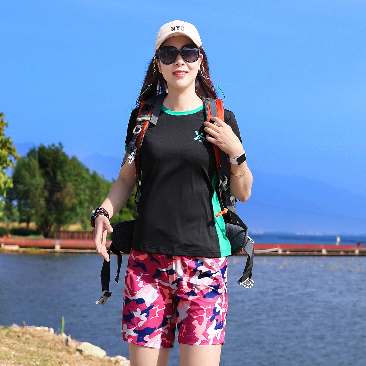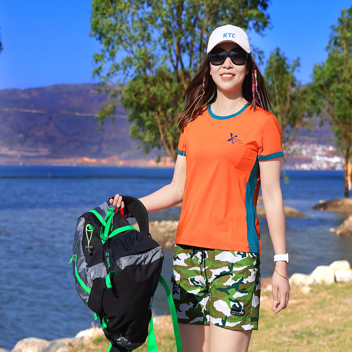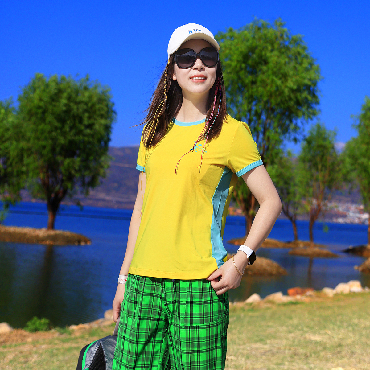 Xueqiu Island outdoor summer new round neck color-blocking short-sleeved T quick-drying breathable hiking fitness sports top women