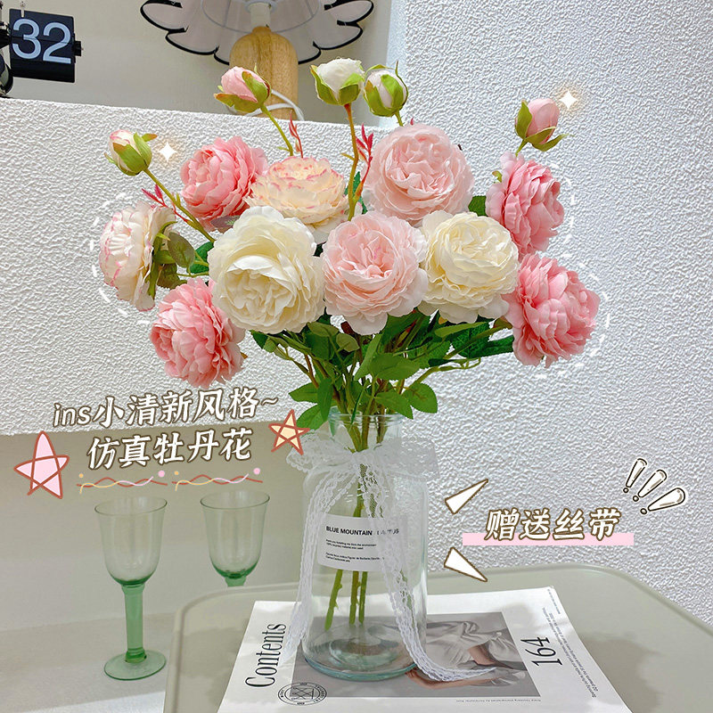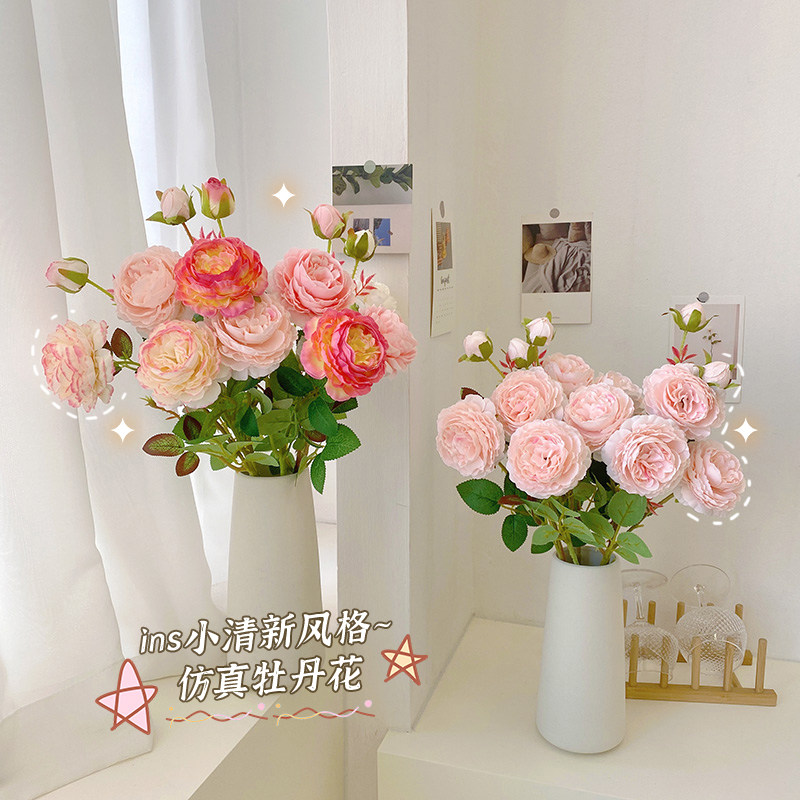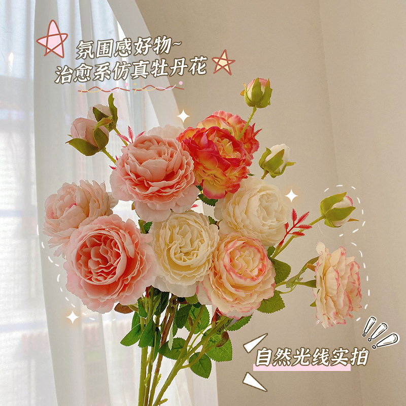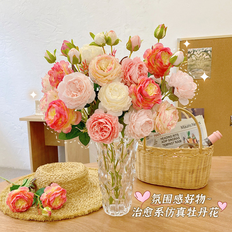 Peony simulation flower fake flower indoor living room decorative flower decoration table flower decoration rose flower dry flower bouquet light luxury
