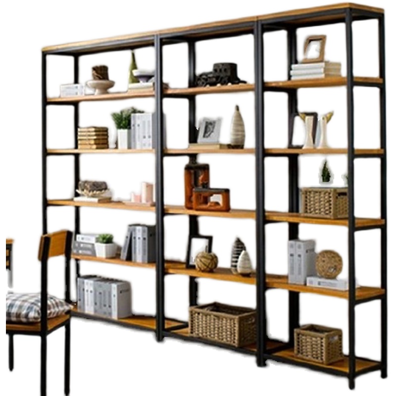 Nordic solid wood partition bookshelf simple modern minimalist living room study floor bookshelf retro rack display rack