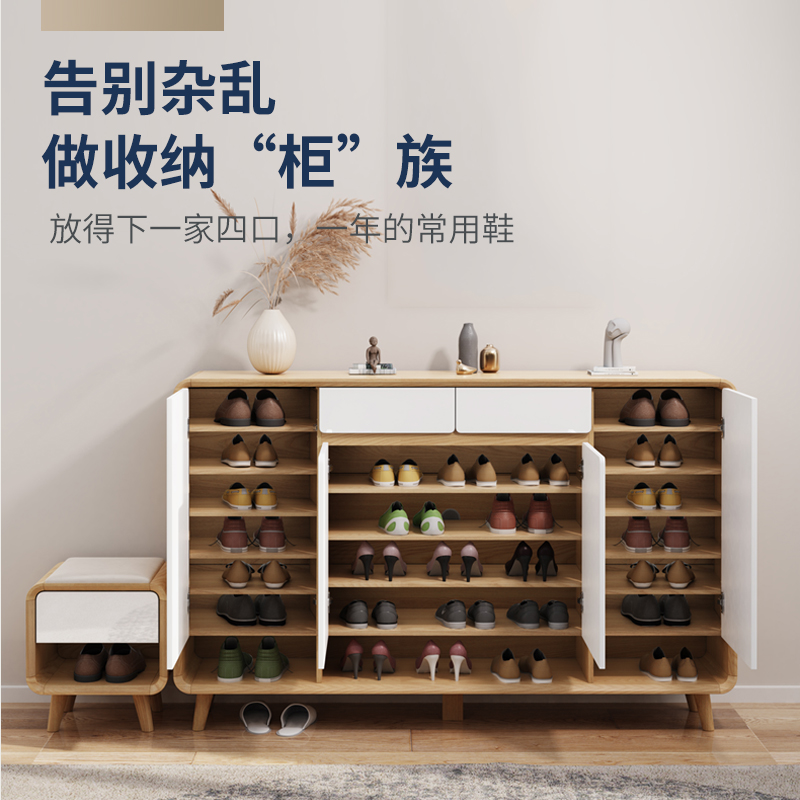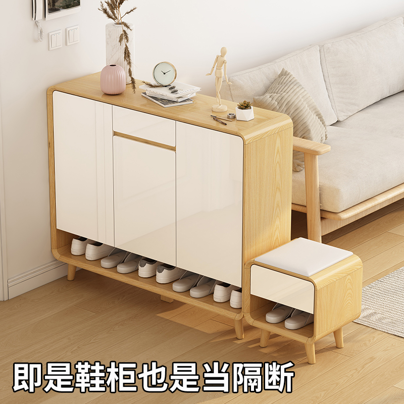 Entrance Shoes Cabinet Nordic Home Doorway Solid Wood Color Minimalist Modern Changing Shoes Stool Large Capacity New Entrance Door Genguan Cabinet-Taobao