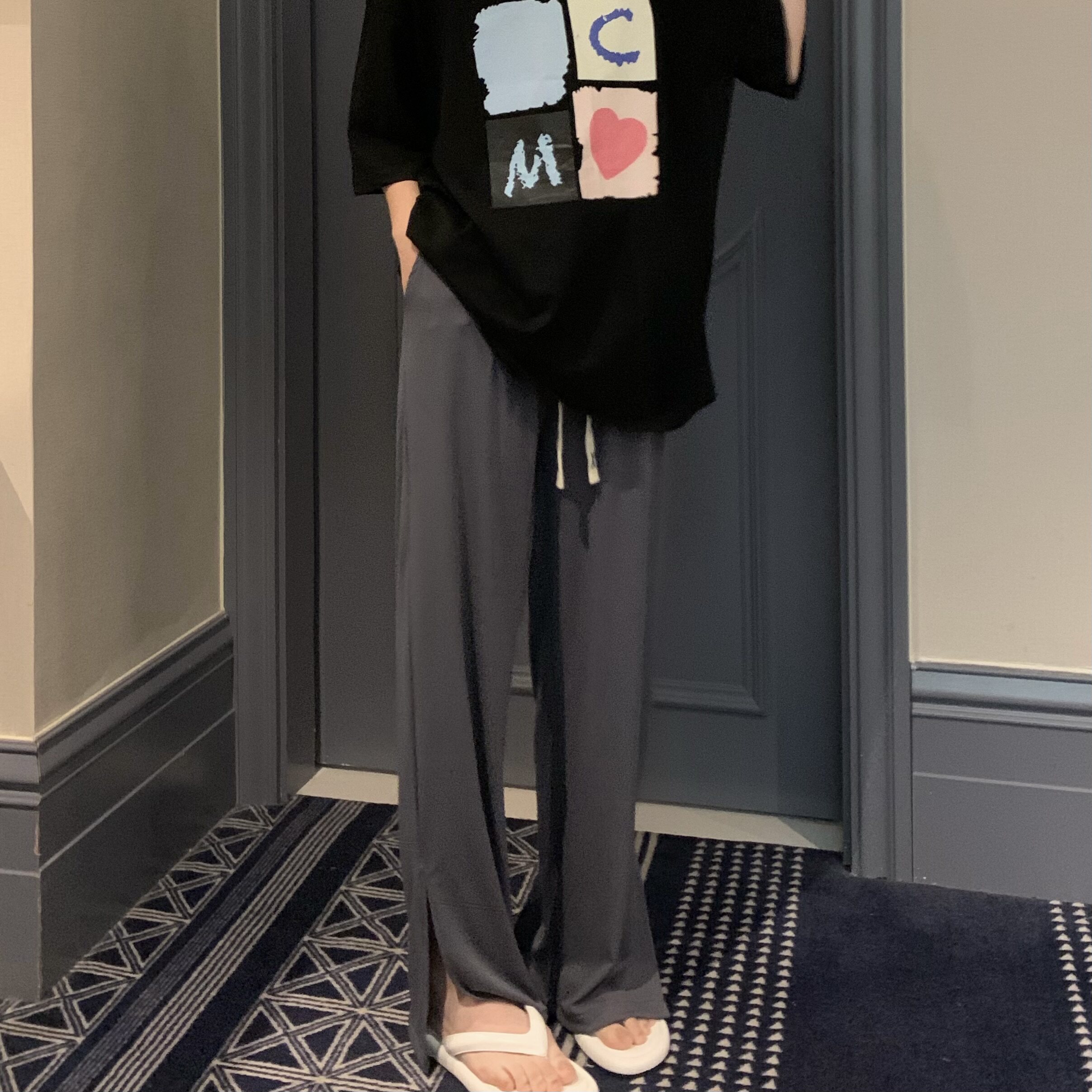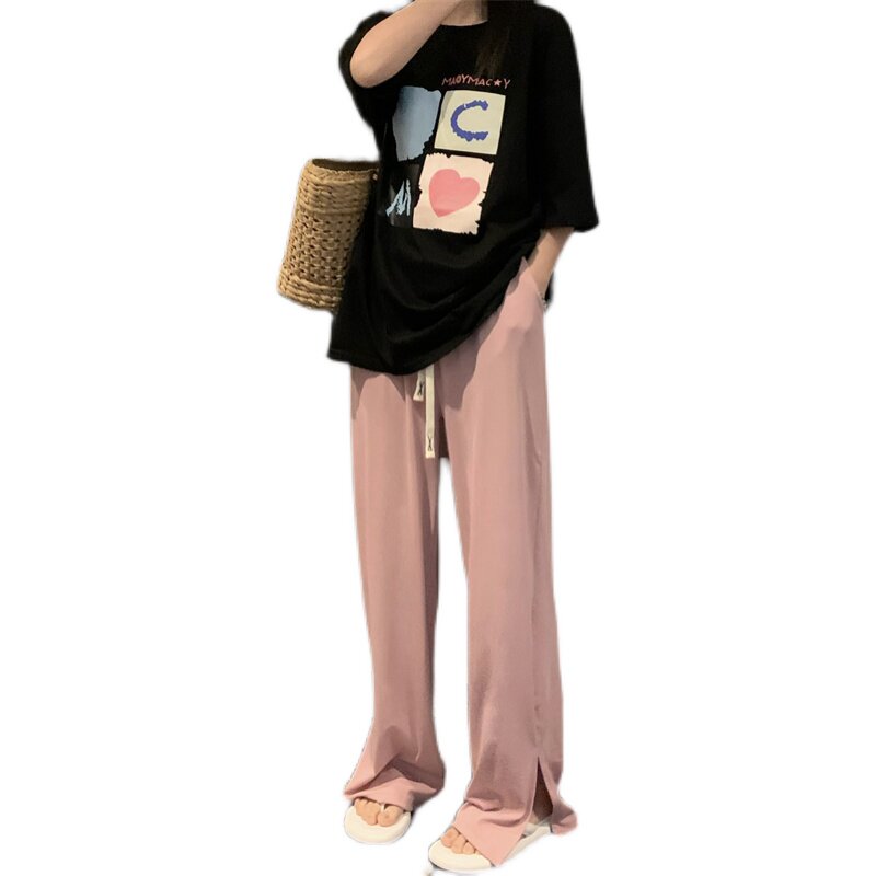 Girls' group style jazz jazz dance pink pants are thin, high waist, droopy, split loose, wide-legged sports pants
