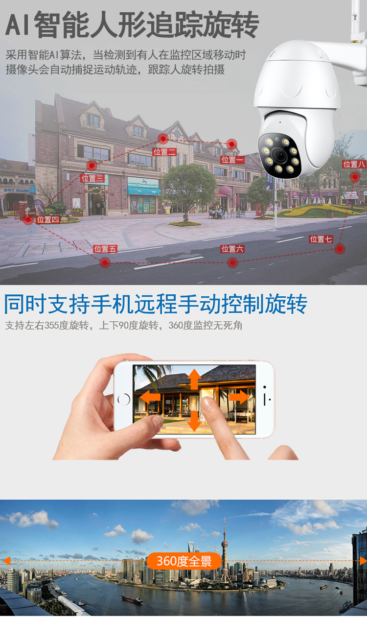 AMONKU camera outdoor night vision high-definition monitor for home remote connection mobile phone panoramic 360 degrees without dead angles