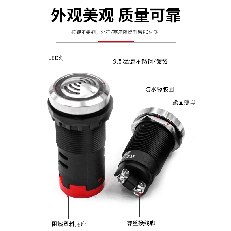 Metal buzzer alarm 16 19 22MM intermittent flash LED flash intermittent sound and light 12 24 220V