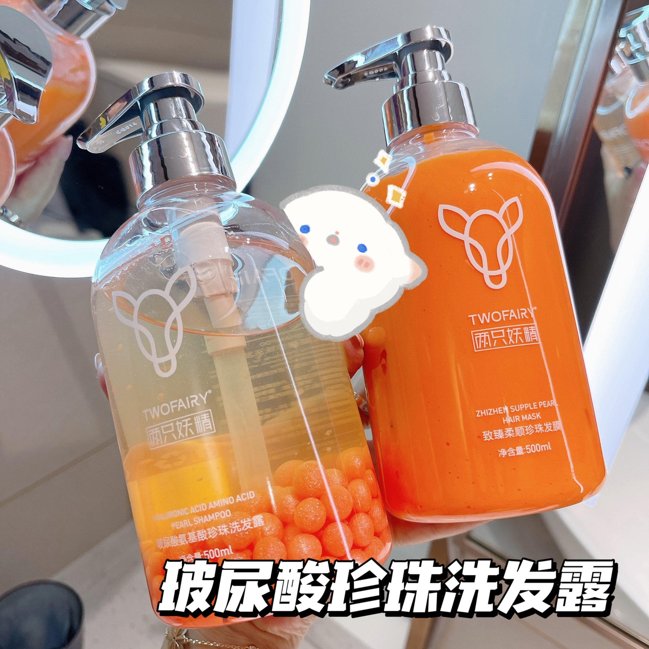 Two bottles of shampoo, 500ml each, free perfume, two bottles of conditioner, 500ml each