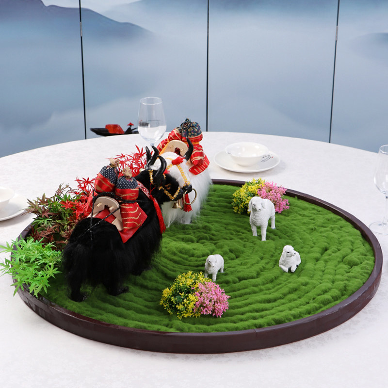 Restaurant turntable decoration flower prairie club micro-landscape hotel landscaping hotel private room round dining table middle decoration