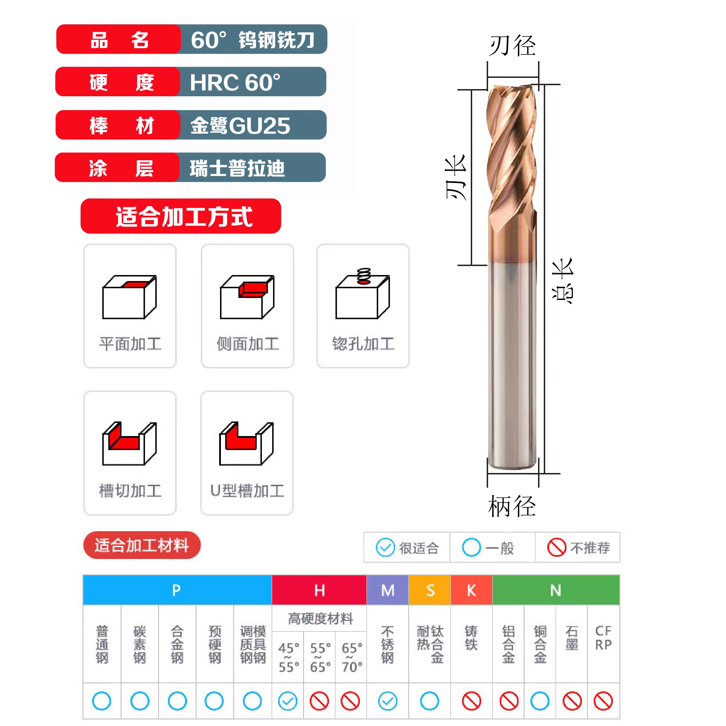 60 degree high-hard tungsten steel end mill 2-blade 3-blade 4-blade alloy coated flat knife ball knife straight handle CNC CNC tool