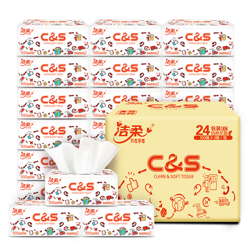 Jierou removable toilet paper 3 layers 100 pumping whole box 24 packs of napkins facial tissue household toilet paper