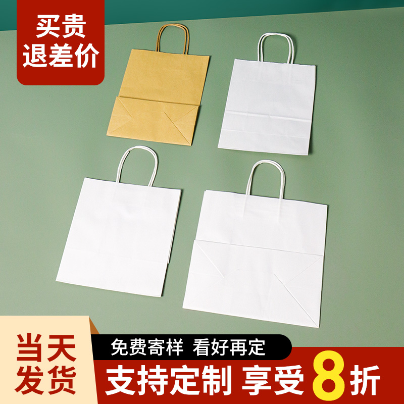 Paper handbag white cowskin handbag bag bag bakerbag bakery cake shop takeaway bag packaging bag custom logo