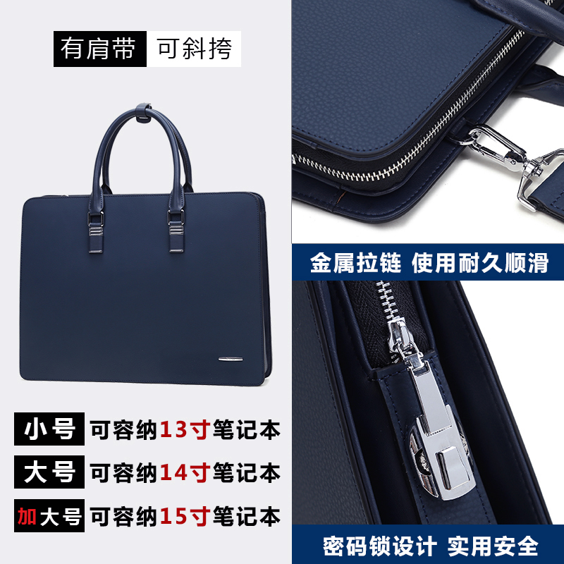 Hillenburg men's bag classic atmospheric business briefcase fashion leather handbag simple and versatile diagonal computer bag