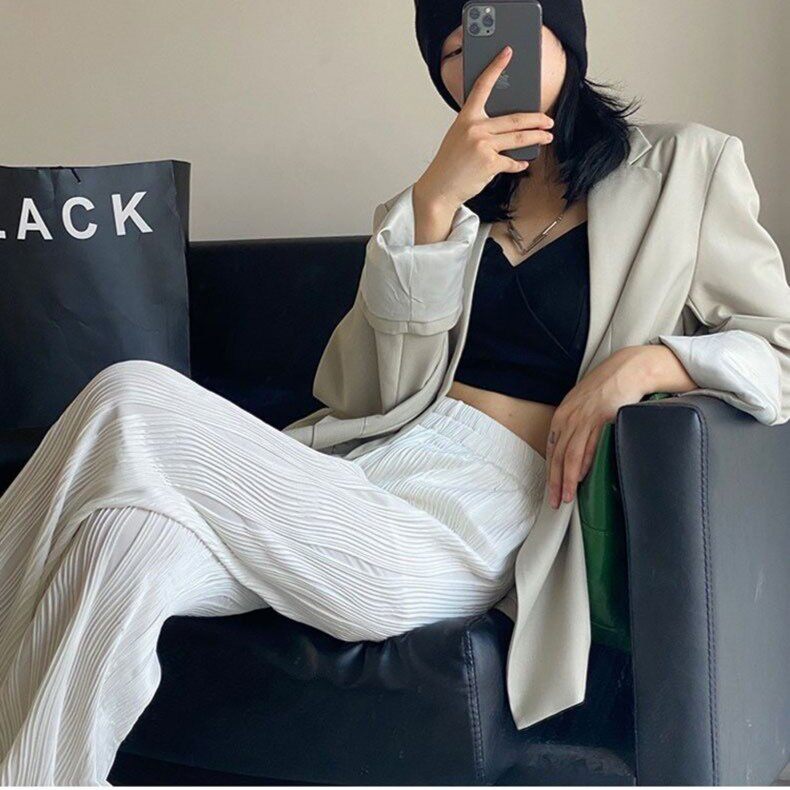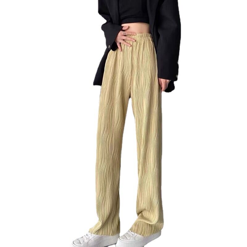 Wrinkled Water Ripple Wide Leg Pants Women's Thin Casual Loose Texture Straight Pants High Waist Drape Ice Silk Mopping Pants