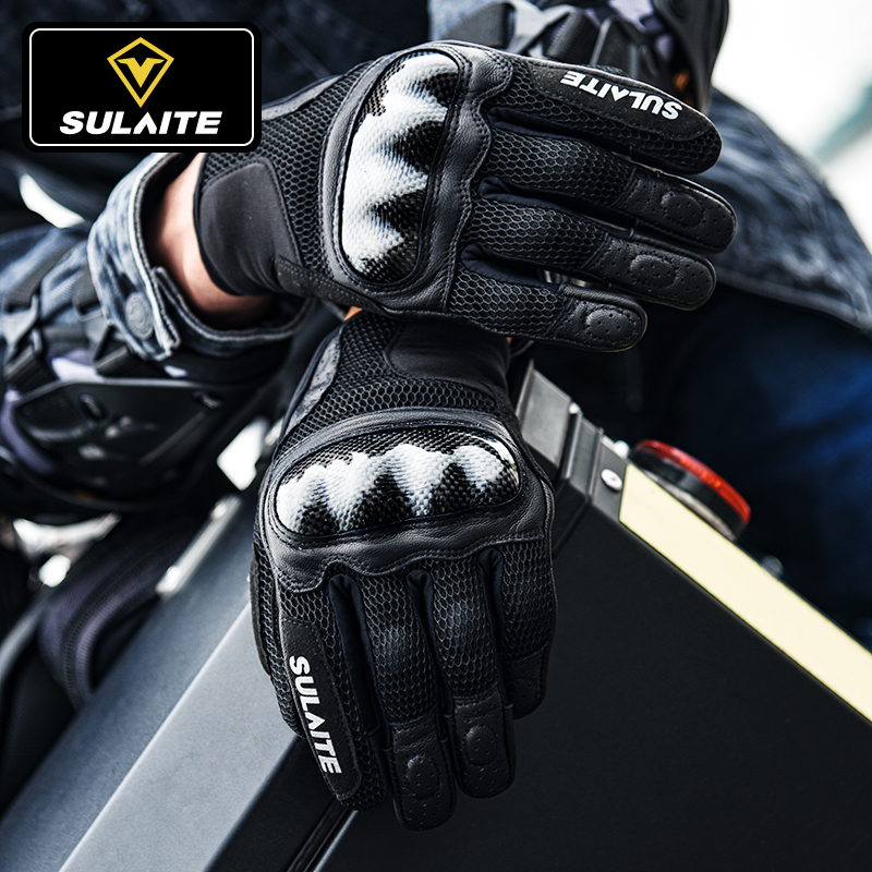 Speed Wright Four Seasons Motorcycle Gloves Genuine Leather Breathable Carbon Fiber Anti-Fall Mesh Thin Section Full Fat Knight Equipment Men
