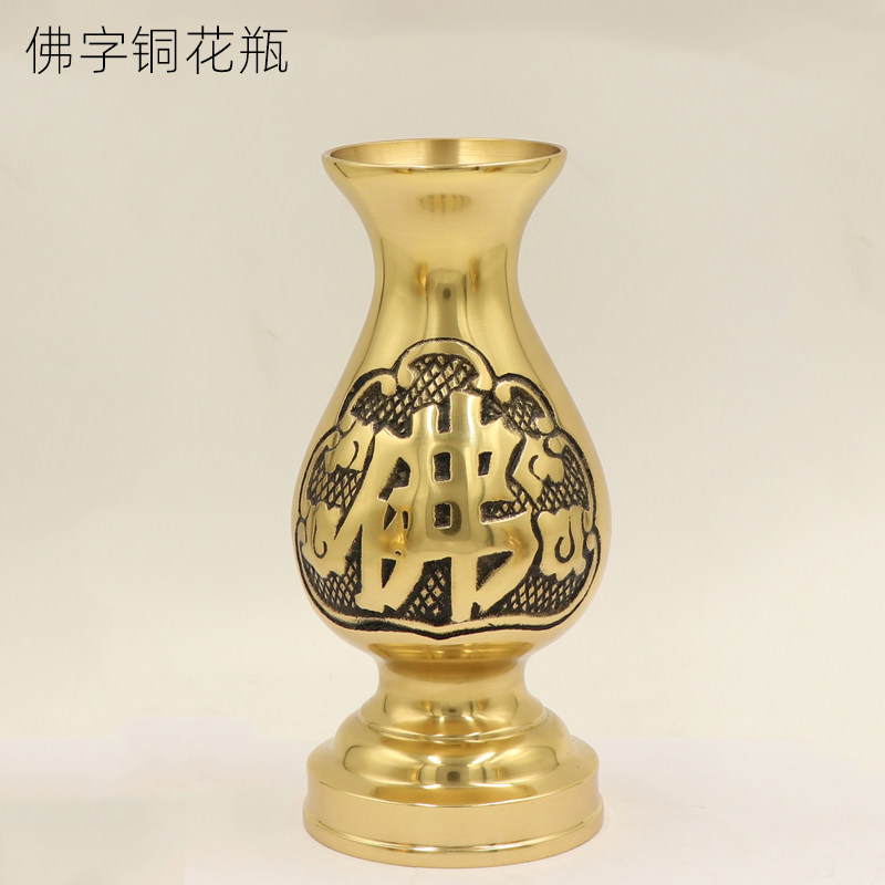 Pure copper vase for Buddhist pair Guanyin water purification bottle to raise flowers and floor large number Buddha Terri Buddha Hall Lotus Fairy Fairy Flower Flower Flower Flower Flower Flower
