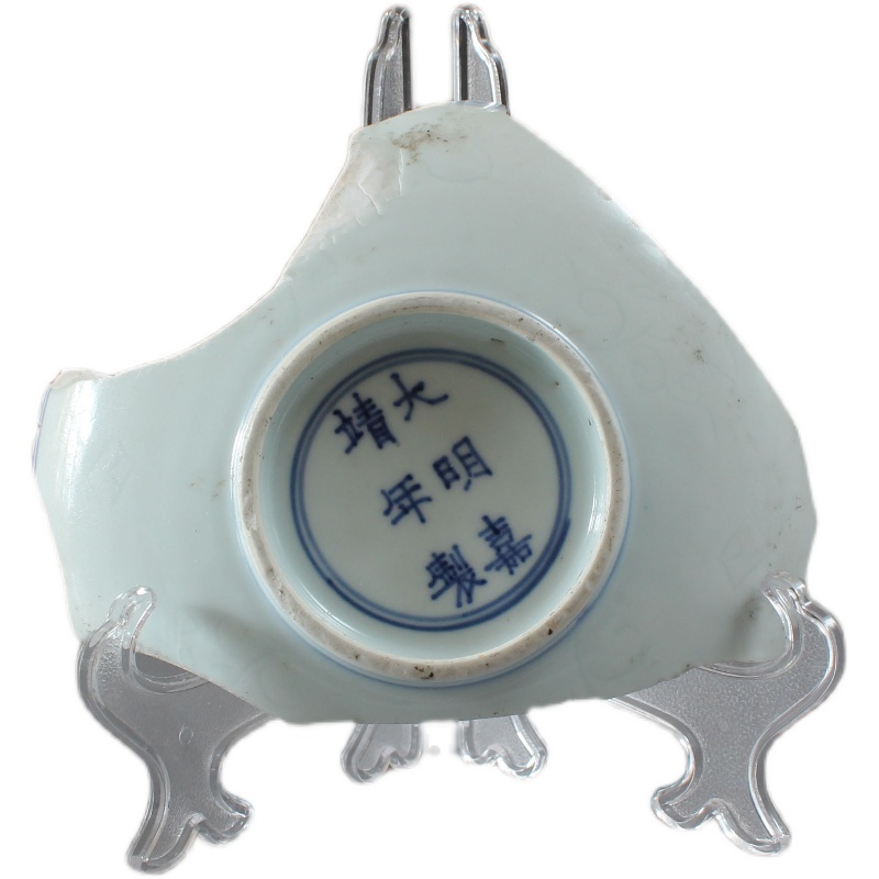2681 Kangxi blue and white lion wearing flower ancient porcelain specimen