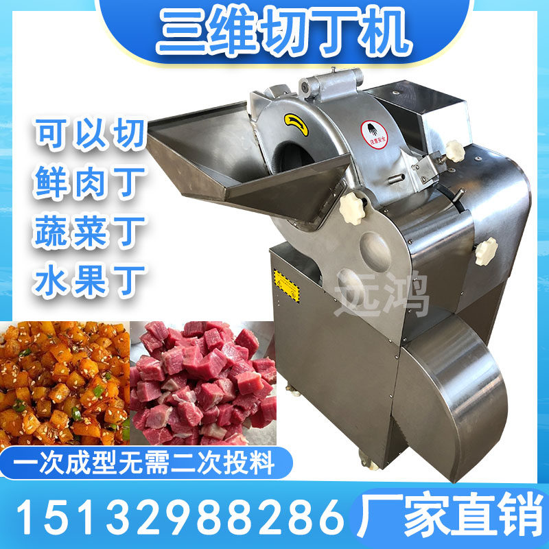 Three-dimensional dicing machine, micro-frozen meat, fruit, chicken breast, pork belly, duck, potato, onion, diced meat and beef granulation machine