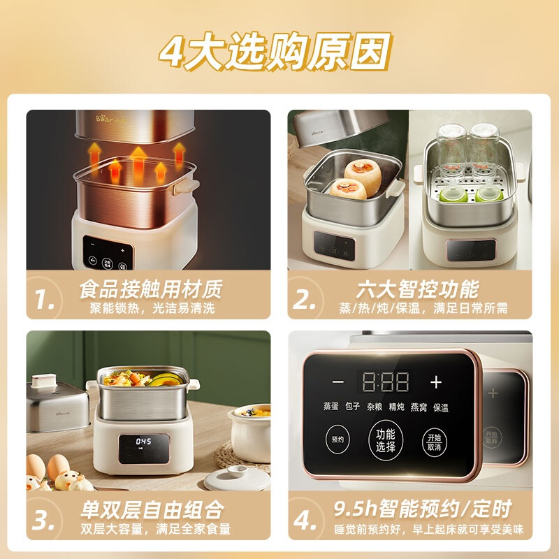 Little Bear Electric Steamer Home Multi-functional Smart Saucepan Fully Automatic Steamed Vegetable Artifact Large Capacity Stainless Steel Egg Steamer