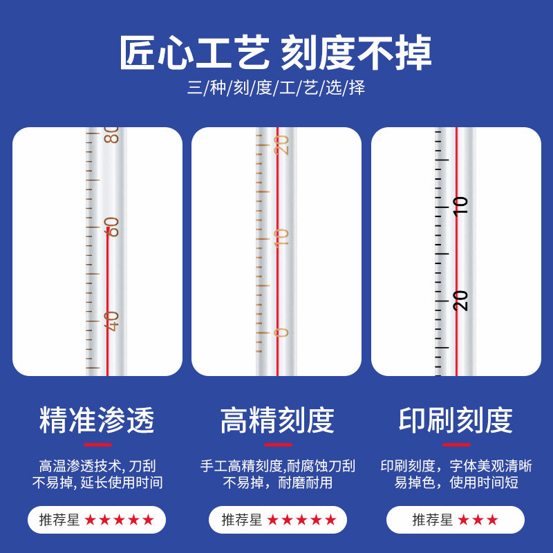 Special high precision red water thermometer-30-100 degrees (1 pin) accurate penetration 0-100 degrees (2 rope rope rope) Precision penetration -1