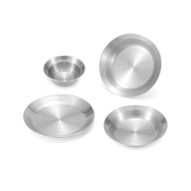 4 pieces of a set of stainless steel dinner plates bowls