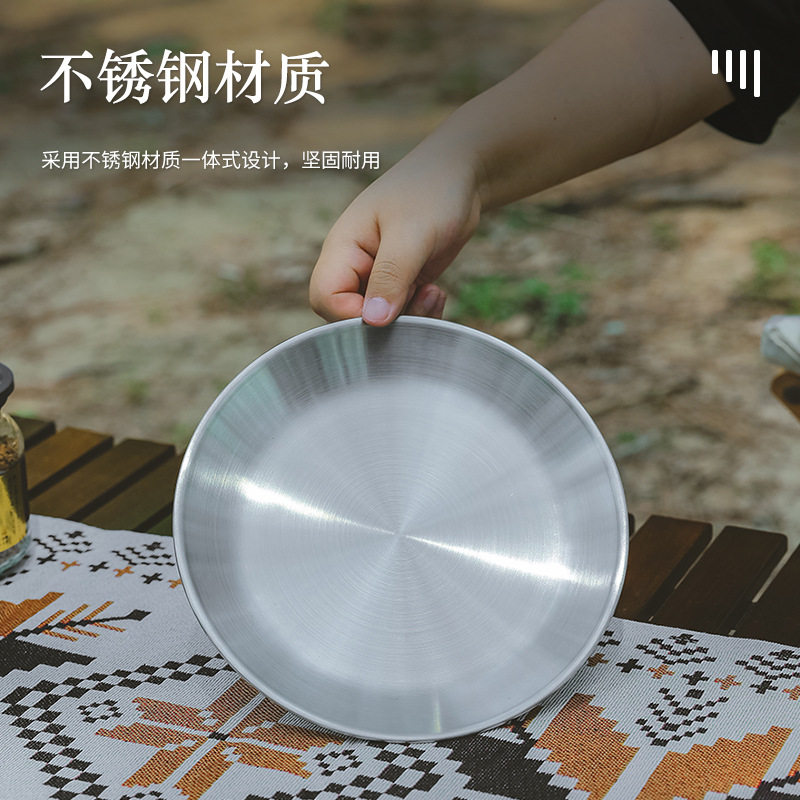 Outdoor Stainless Steel Dinner Plate 4 pieces Salad Bowl of Outdoor Supplies Camping Cutlery Eggpan Into Wild Camping Dinner Plate