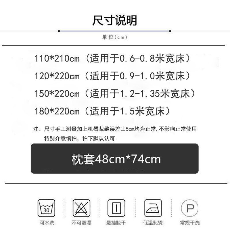 Single sheet(110*210cm)Single sheet(120*220cm)Single sheet(150*220cm)Single sheet(180*220cm)110*