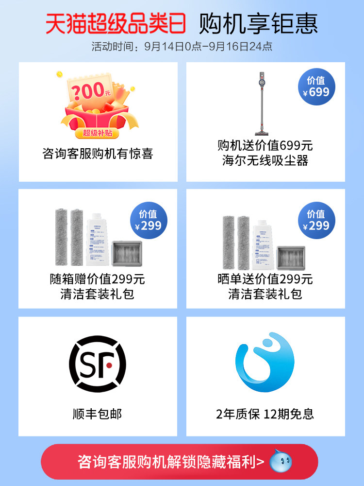Haier washing machine suction and drag All home smart three-in-one automatic mopping and sterilizing double-roll scrubbing machine z9