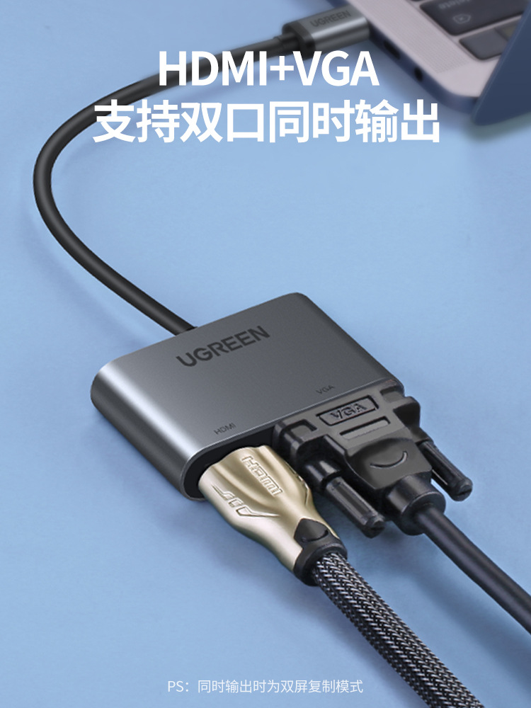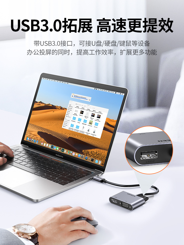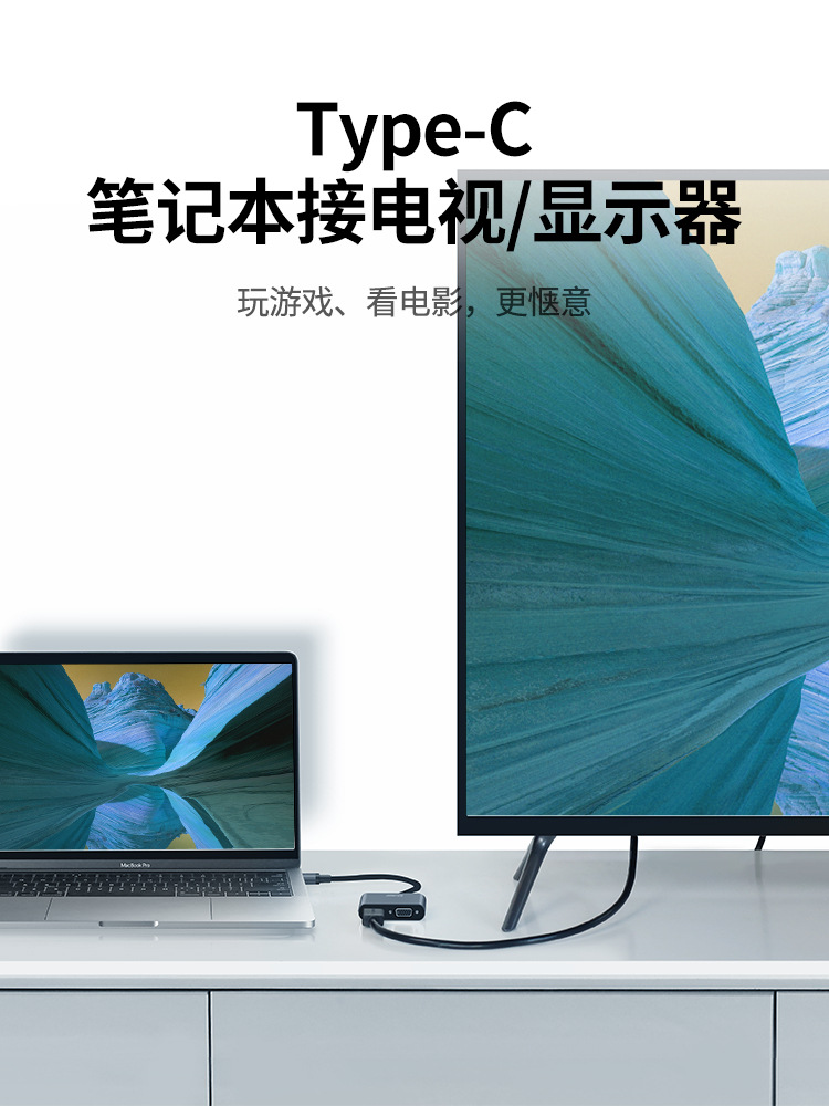 Green Typec to HDMI VGA expanded converter notebook phone connected to TV projector MacBook