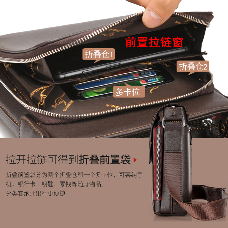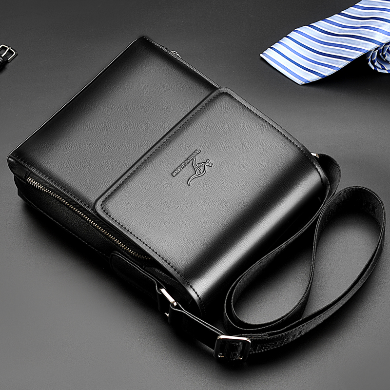 Kangaroo Men's Single Shoulder Bag Genuine Leather Business Casual Men's Bag Vertical Diagonal Satchel Wave Men Middle-aged Hanging Bag Backpack-Taobao