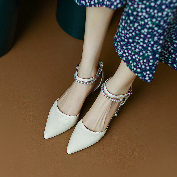 Baotou leather sandals women's 2022 new summer mid-heel fashion one-word buckle fairy style high heels