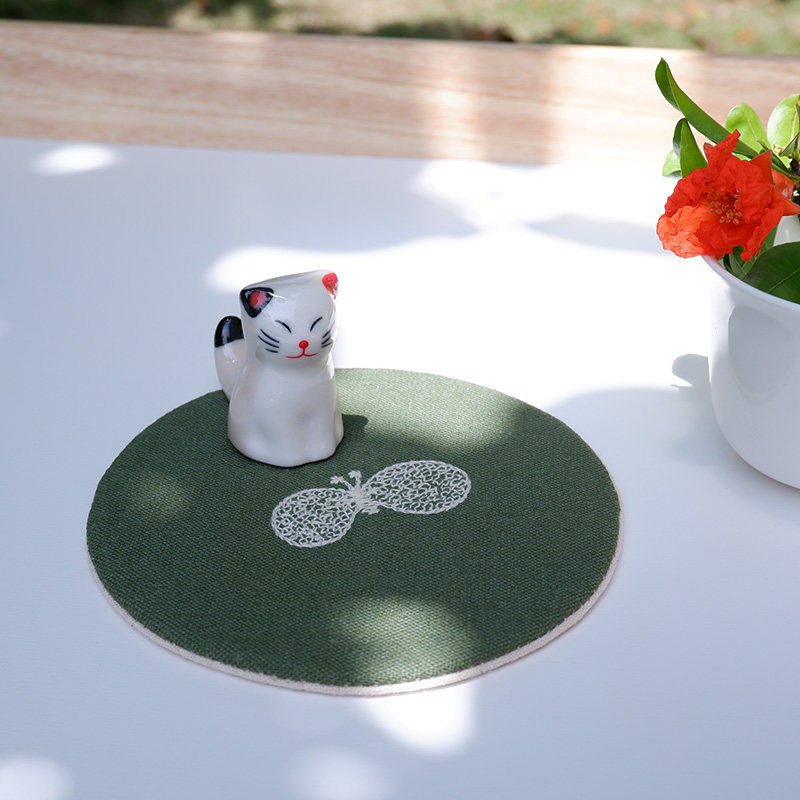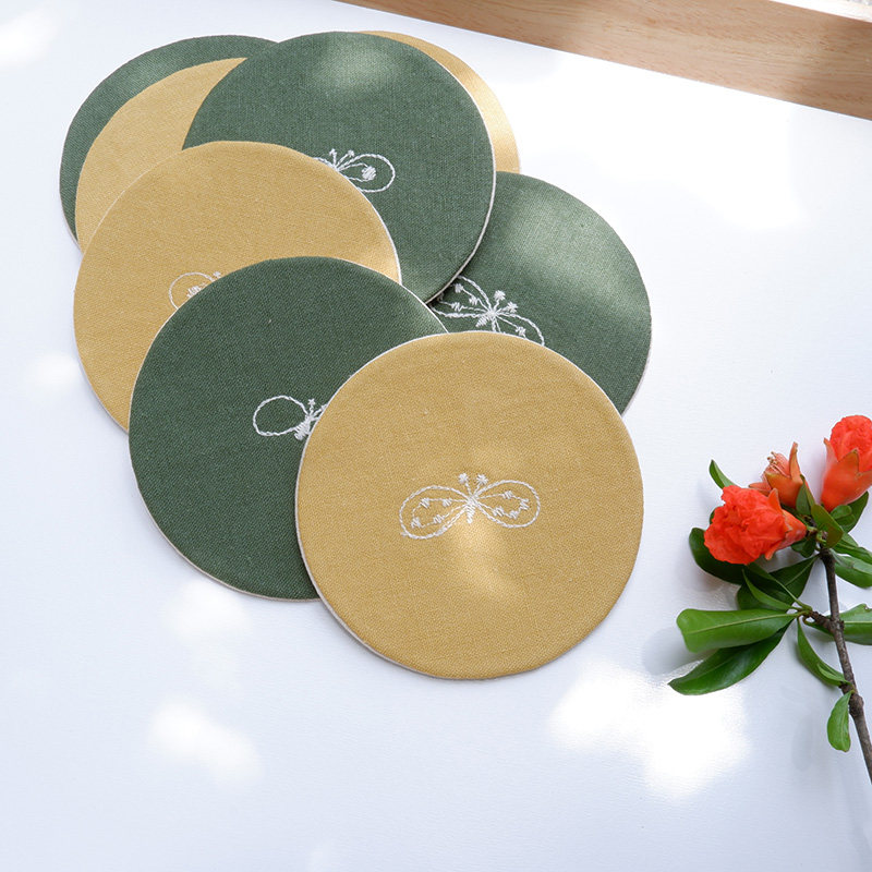 Embroidered Butterfly Simple Wind Cotton Linen 10cm Round Handmade Fabric Padded Coaster Tea Mat Cute Small Objects