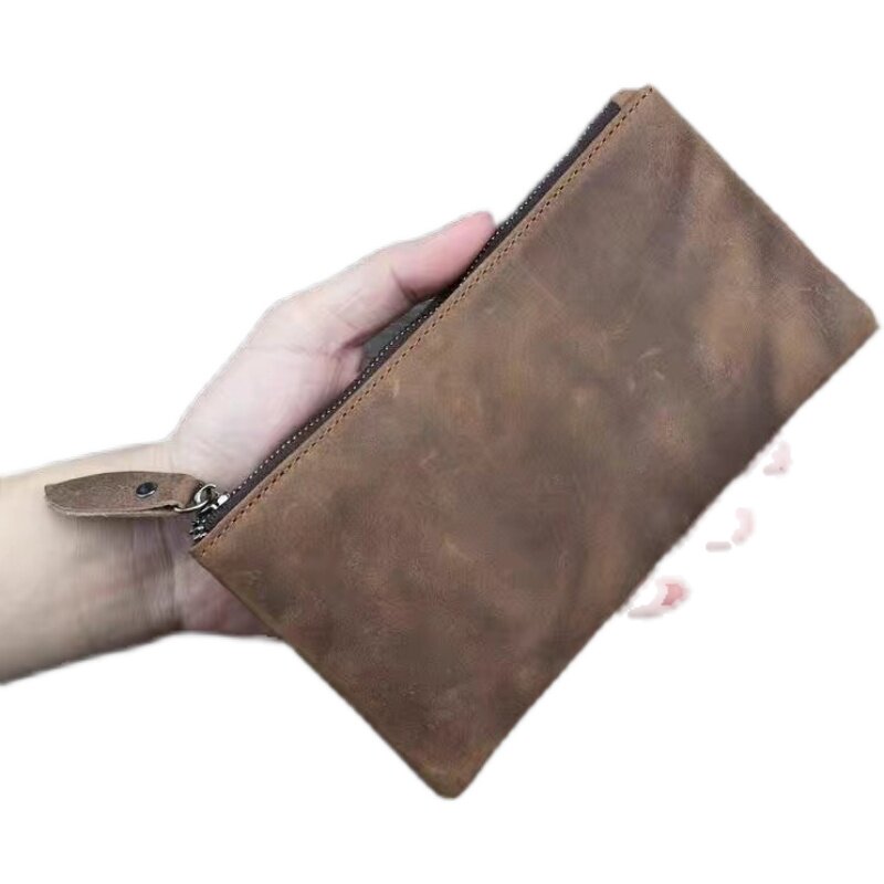 Crazy horse leather handmade simple men's wallet long version clutch bag first layer cowhide ultra-thin wallet retro leather women's bag