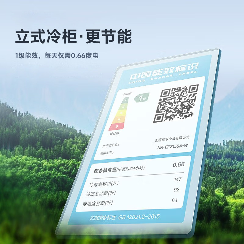PANASONIC NR-EFZ15SA-W JFZ15WA-B Partition drawer air cooling without frost first-stage energy efficiency refrigerator