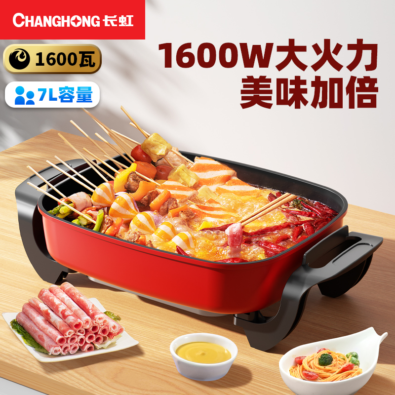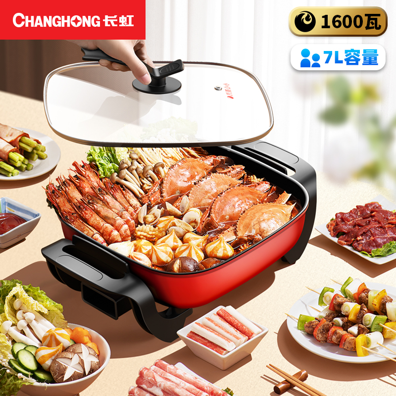 Long-iridescent multifunctional electric frying pan electric hot pot boiler home electric pot students cooking Dormitory Meals Barbecue integrated pot-Taobao