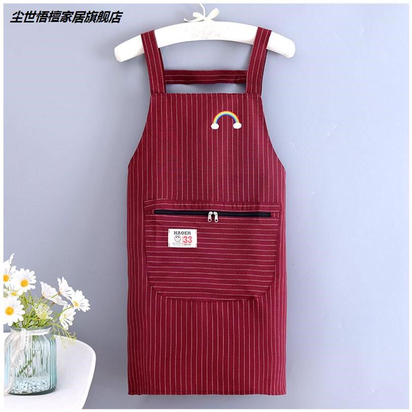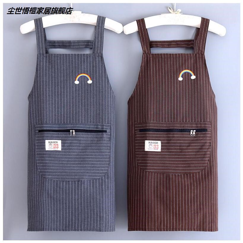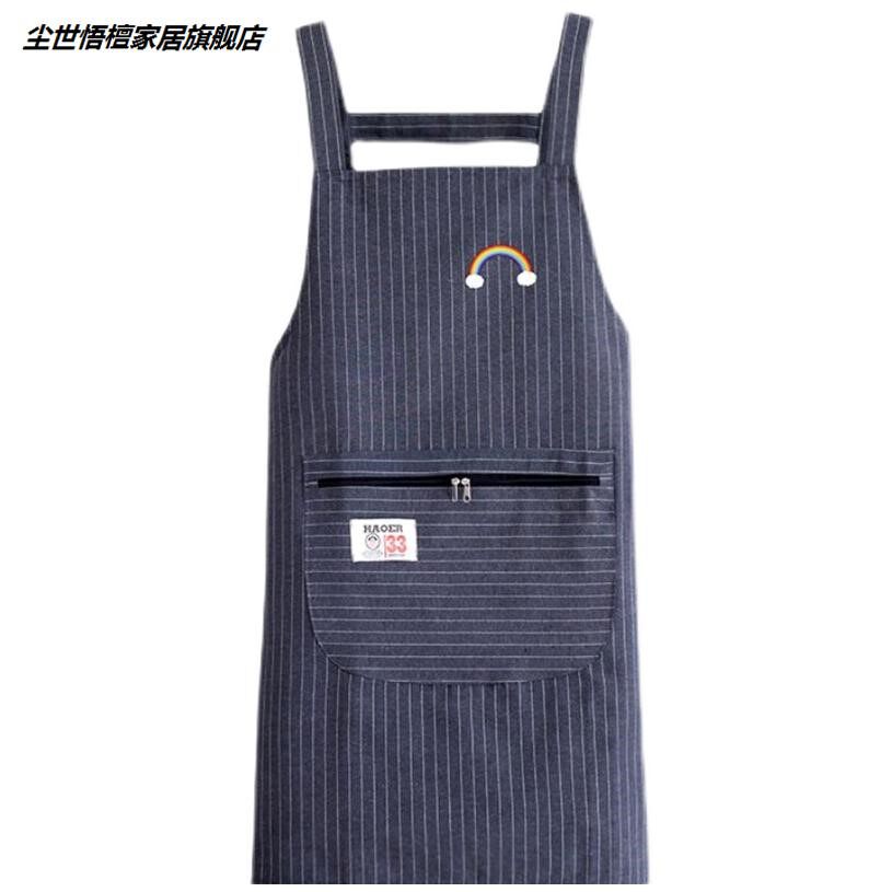 Pure cotton zipper pocket strap apron female kitchen household cooking apron large pocket anti-fouling work clothes custom