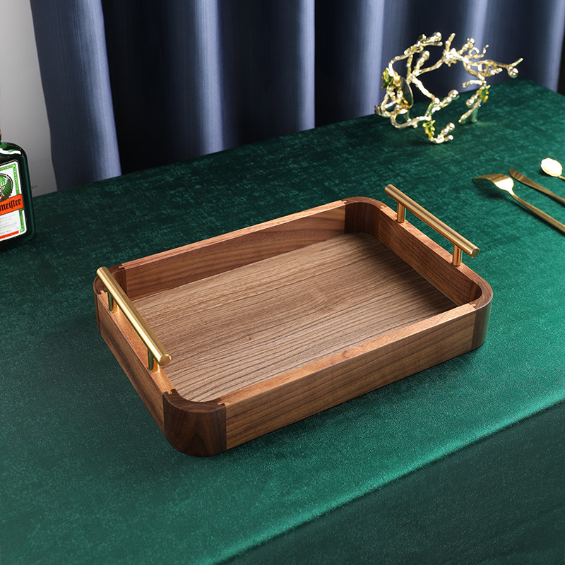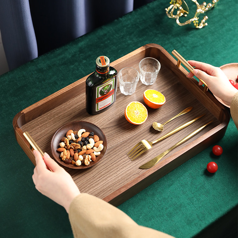 Rectangular wood pallet upscale tea cup containing tea tray New Chinese style fruit pan walnut wood snacks fruit pan-Taobao